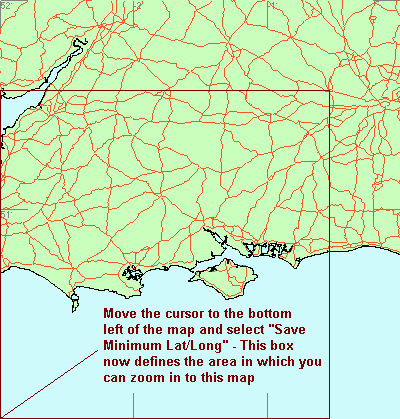 Now we set the minimum lat/long to a new position. In this case it's at the bottom left so we can press V to move there immediately:-