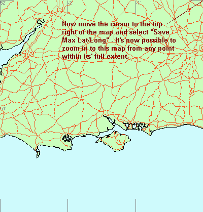 Now we set the Maximum Lat/Long in the same manner using the B key to move there quickly:-